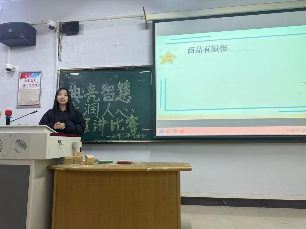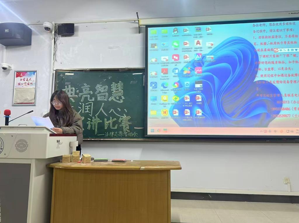 为弘扬法治精神,提升大学生的法治素养和综合能力,买球官方网站法律志愿者协会于10月20-21日于综合楼7楼成功举办了以“典亮智慧,法润人心”为主题的宣讲比赛。本次活动吸引了各专业学生积极参与,展现了青年学子投身普法宣传的责任担当。