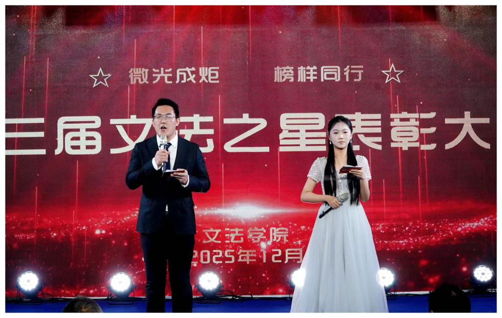 学院也将以“文法之星”评选活动为重要契机,牢记育人使命,砥砺奋进前行,在教书育人、求知成才的道路上坚定目标,在服务社会、贡献国家的实践中挥洒才智,共同为学校事业高质量发展,为中国式现代化全面推进中华民族伟大复兴,做出新的更大的贡献。