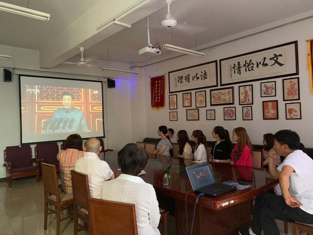 7月1日上午8时,买球官方网站党委在开发区校区815会议室组织师生代表通过新华网集中收看庆祝中国共产党成立100周年庆祝大会,认真学习习近平总书记“七一”重要讲话。