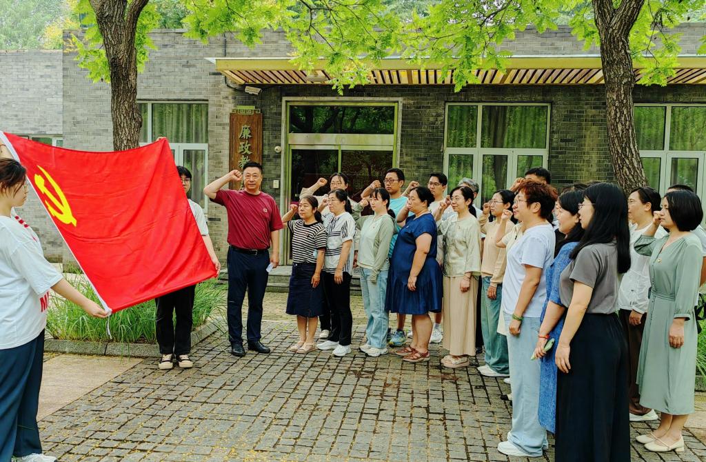 活动中,全体党员干部参观了基地的廉政园、池西书肆、廉政文化景观路和廉政主题展等,认真聆听讲解员的讲述,在廉洁文化教育和政德引导,全体党员进一步提升了廉洁意识。随后,全体党员面向党旗,高举右拳,在领誓人的带领下重温入党誓词,激励党员不忘初心、牢记使命,充分发挥党员的先锋模范作用。