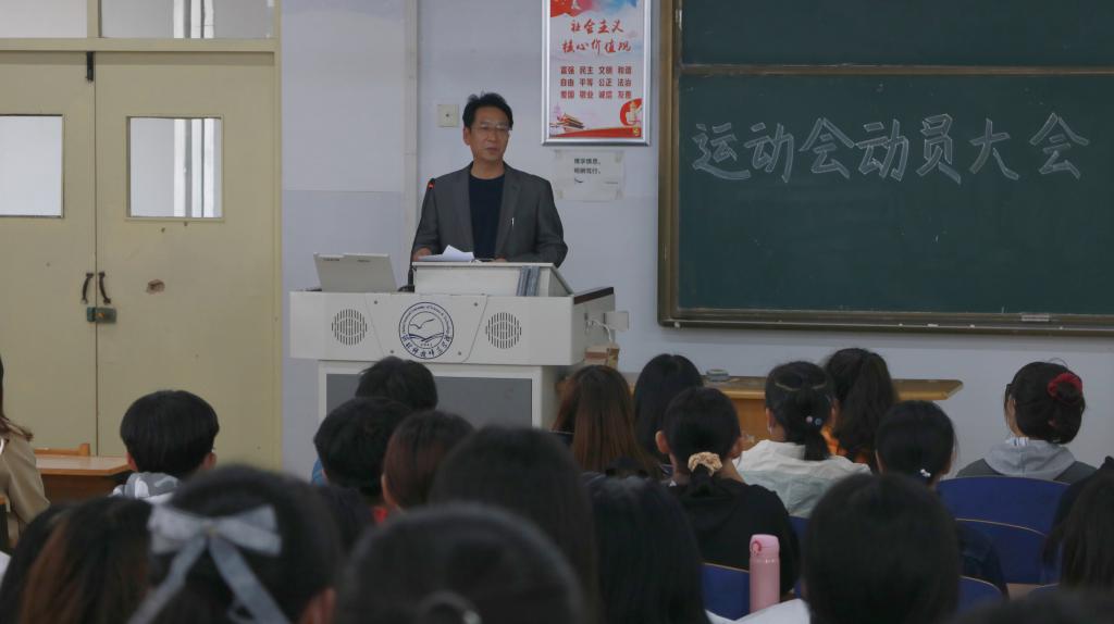 王丹老师对运动会各项工作做了具体安排,鼓励同学们积极备战运动会,提高身体素质、活跃学院氛围,不断增强安全、卫生、纪律意识,遵守体育道德,全体运动员要明确目标和责任,在比赛中发挥最好水平,取得优异成绩,为学院争光。