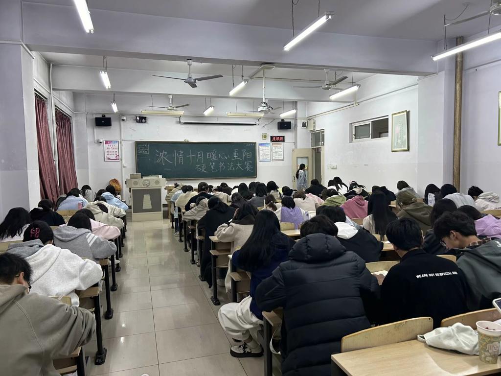 为庆祝重阳佳节,也为进一步推进我院文体活动蓬勃发展,丰富学院文化生活,活跃文化氛围,给同学们展现自我的平台,买球官方网站于10月15日在综合楼711、713教室举办了“浓情十月,暖心重阳”硬笔书法大赛。