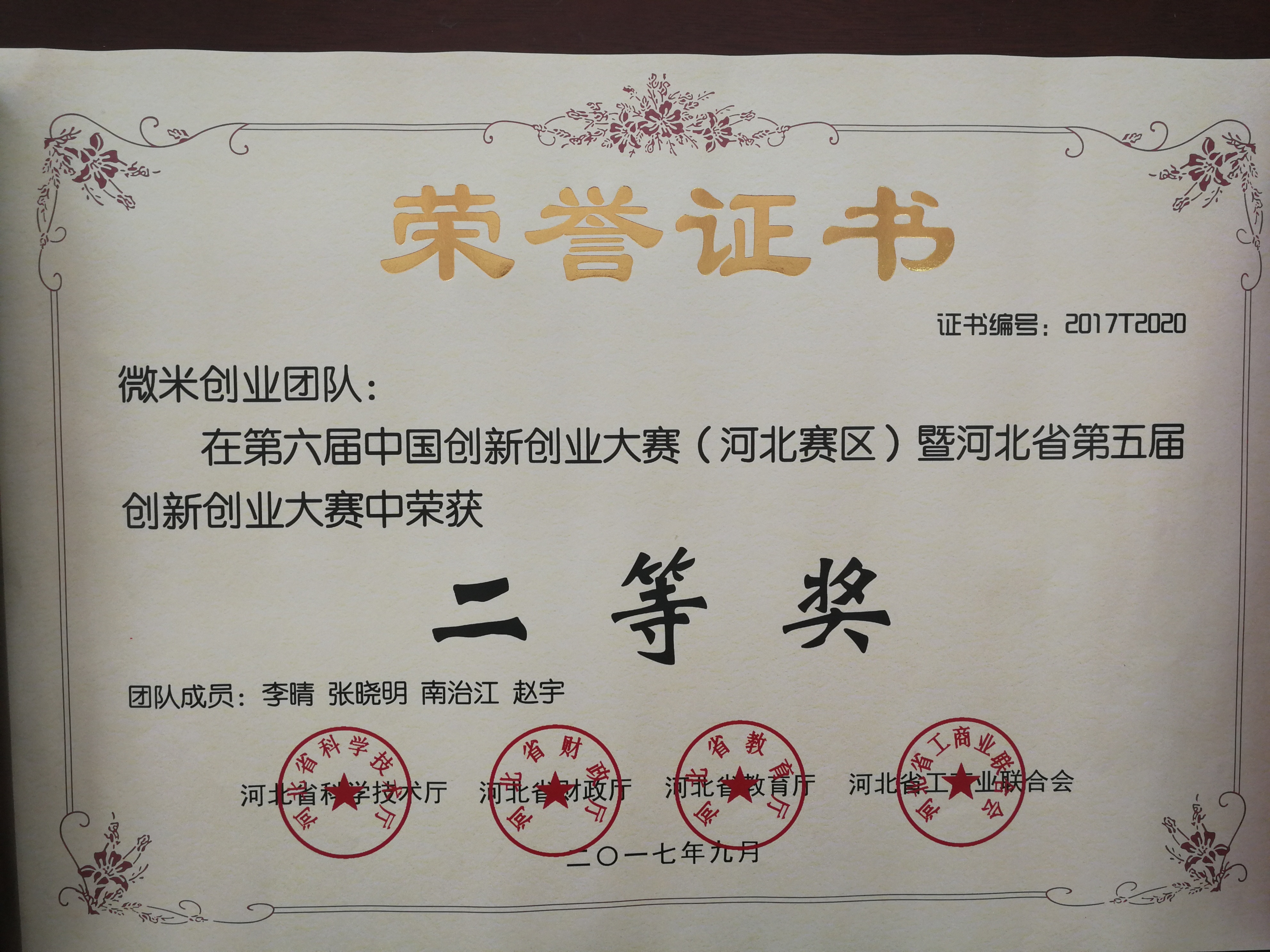 近日,在第六届中国创新创业大赛(河北赛区)暨河北省第五届创新创业大赛中,买球官方网站吴玉静老师指导的创业团队“微米科技有限公司”荣获二等奖,参赛学生为14级法学李晴、张晓明、南治江、赵宇。