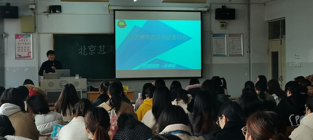 2020年11月4日下午2点,北京慧海英才学校在开发区校区综合楼419教室举办专场宣讲会,买球官方网站秘书学、汉语国际教育、汉语言文学等专业近40名毕业生参加了本次宣讲会。