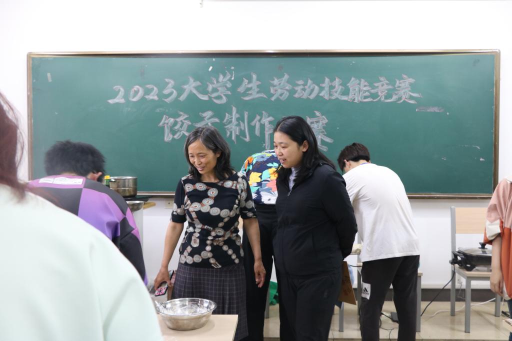 本次活动邀请了学校招生就业处田愉老师莅临指导,田老师高度赞扬了本次劳动技能竞赛。此外,学工办全体老师一同到场,陪伴大家,与同学们一起包饺子,学生会主席团成员也来到现场,参与包饺子活动,并为竞赛选手加油助威。