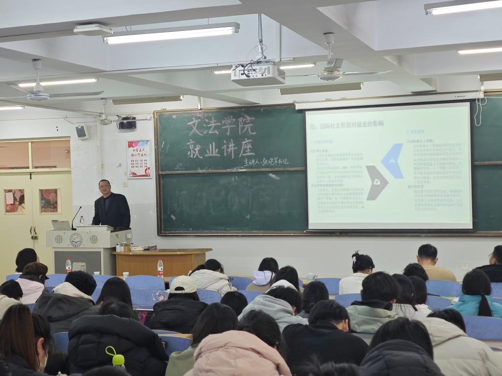 随着经济社会的发展,科技发展日新月异,新兴市场不断涌现,就业形势异常严峻,许多高校毕业生对当前就业形势认知不清,对自身职业规划路径存在困惑。在此背景下,为了增强学生就业竞争力,明确职业发展方向,拓展就业发展渠道。2024年12月5日,买球官方网站针对2025届毕业生开展了就业形势与就业政策分析讲座。
