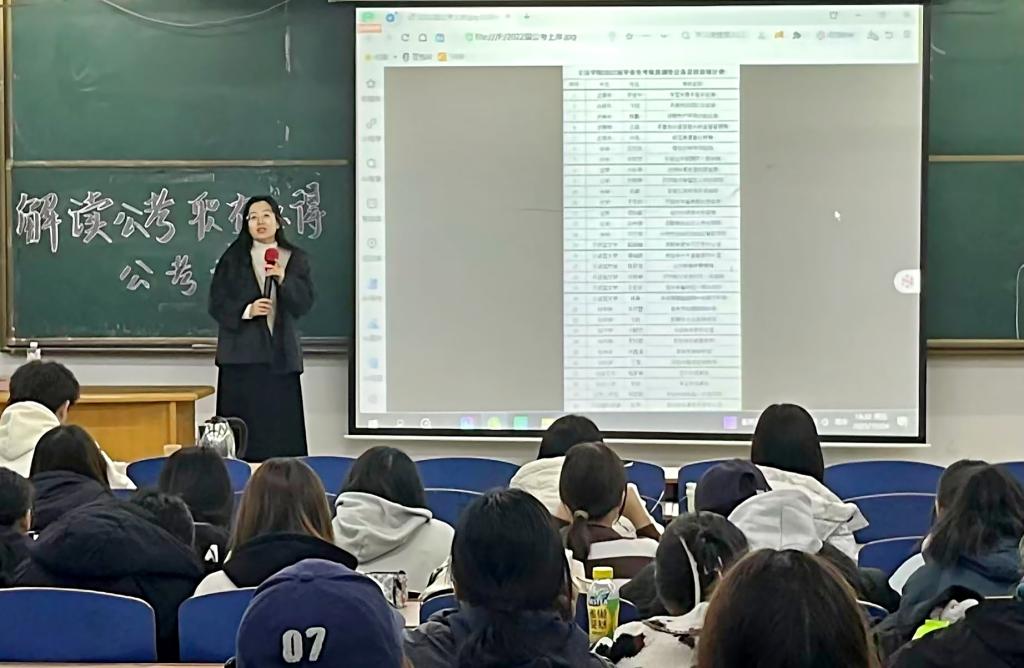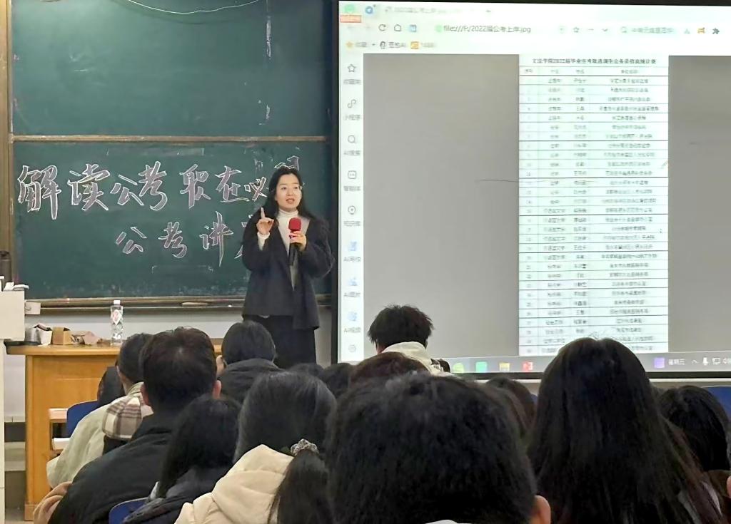 为了提升同学们对公考的了解,帮助同学们走出公考的困境,增强对公考的信心。买球官方网站于2025年10月24日在综合楼412教室开展“解读公考,职在必得”主题讲座。