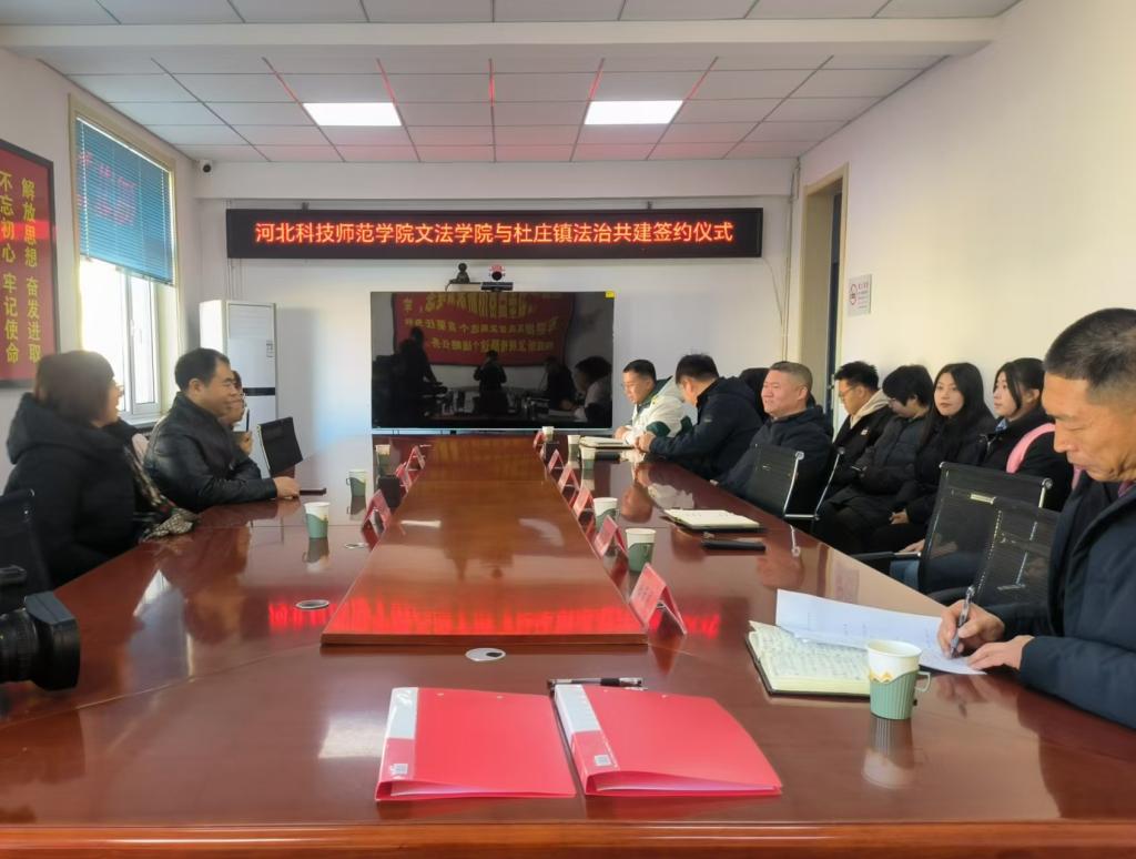 在杜庄镇政府,我院领导老师与杜庄镇相关负责人共同进行了买球官方网站与杜庄镇法治共建签约仪式。双方充分交流,我院院长赵福江与杜庄镇党委书记邵开礼共同签署了共建协议。